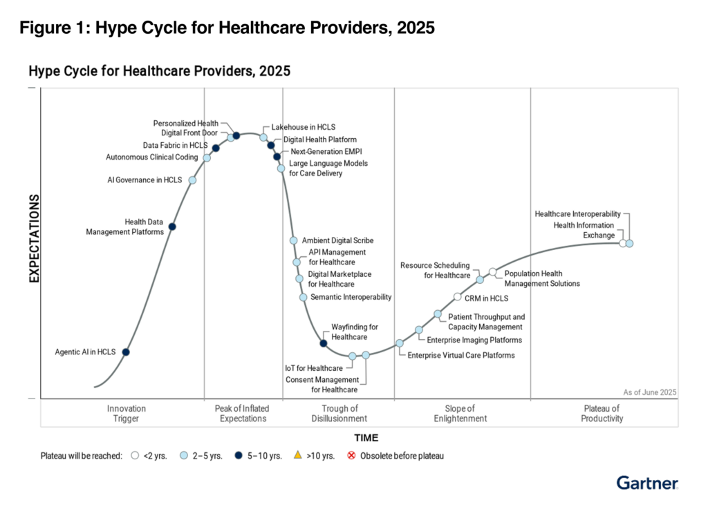 Gartner® Hype Cycle™ for Healthcare Providers, 2025 offers a roadmap for navigating healthcare innovation. By assessing the report, we believe healthcare CIOs can prioritize investments that deliver measurable clinical and operational value.